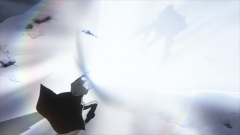 Justin nyaktilv vltoztatja karjt, majd egy erteljes, ezst szn kivgz sugarat l clpontjra. A sugr rendkvl nagy tt tulajdonsggal br.